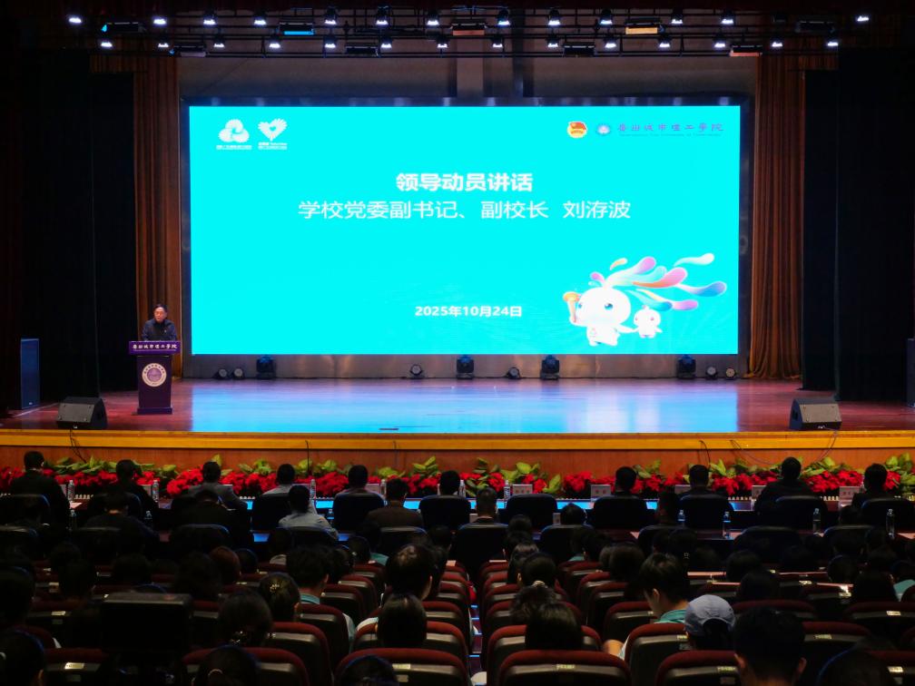 最后,学校党委副书记、副校长刘洊波作动员讲话。他强调“十五运会和残特奥会”是粤港澳三地首次联合承办的大型体育赛事,更是国家推进粤港澳大湾区协同发展的重要举措,意义重大、影响深远。他表示,在开幕式来临之际,将迎来赛程密集、任务繁重的关键阶段,这对我校志愿服务质量、专业水平和协作能力,提出了更高的标准、更严的要求。他希望全体志愿者能做到以下几点:一是提高站位,深化认识,以最佳状态投入服务;二是严守纪律,团结协作,以最实作风展现形象;三是统筹兼顾,筑牢底线,兼顾好学业、安全与服务。最后,他衷心祝愿我校志愿者能在志愿服务中收获成长、收获快乐!祝愿“十五运会与残特奥会”圆满成功!
