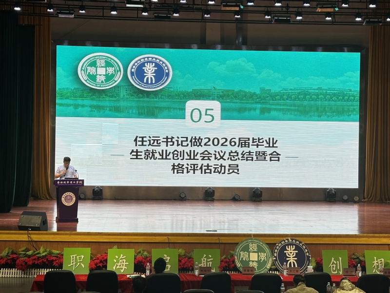 最后,任远作总结动员。他首先对各位嘉宾的倾情分享与全体辅导员、班主任的辛勤付出表示感谢,并重申了学院对2026届毕业生就业创业工作的高度重视与坚定支持。他寄语全体毕业生:一要认清形势,坚定信心,以主动姿态迎战就业市场;二要夯实内功,提升素养,将专业所学转化为职场所用;三要放眼全局,勇于担当,在更广阔的天地中实现理想。与此同时,他强调,要深刻领会顺利通过评估工作对于学校长远发展的重大战略意义,并号召全体成员以饱满炽热的热情、昂扬向上的斗志以及坚定不移的信念,全身心投入到即将到来的正式评估挑战中,齐心协力、奋勇拼搏,为学校的发展贡献自己的智慧与力量。