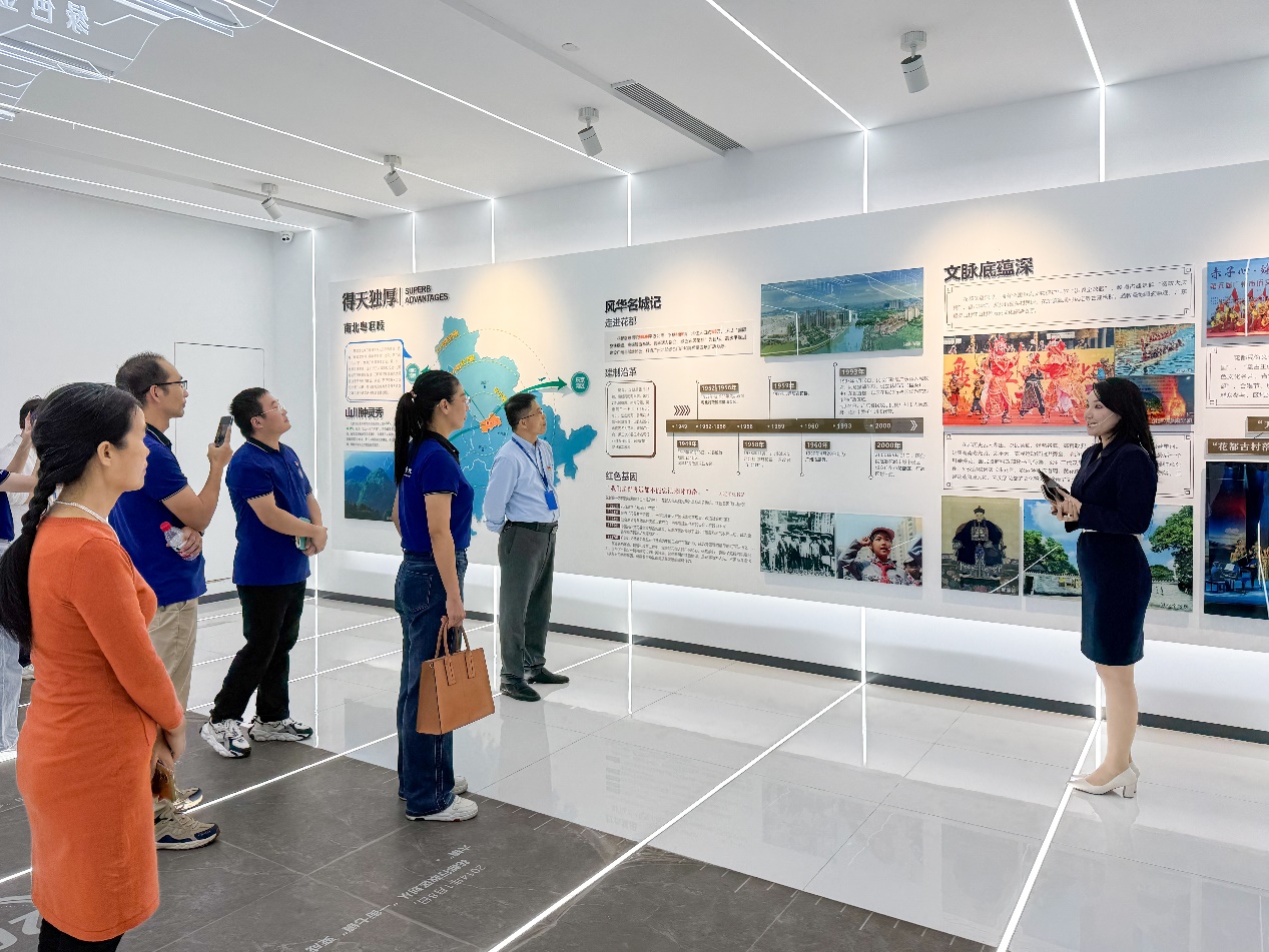 仪式结束后,全体党员前往花都城市展厅参观学习。花都城市展厅是展示花都区文化、社会、经济、城市规划建设成就与发展愿景的重要平台。展厅以“国际空铁枢纽之都的腾飞之旅”为主题,设有启程篇、腾飞篇、未来篇三大篇章,通过智能、互动、光影技术,全面呈现花都的发展蓝图。同志们依次参观了序厅、交通情景空间、规划展示区等区域,深入了解了花都的区位优势、交通网络、产业规划等内容。