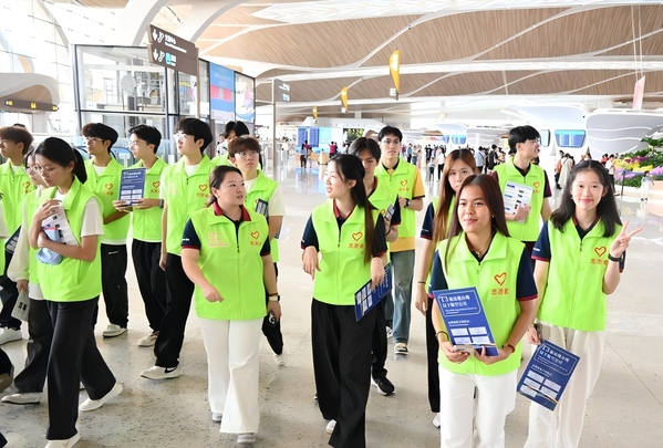电子信息工程学院2022级香港籍学生薛广銮感谢学校提供与国际同学共事的机会,他既为T3航站楼宽敞明亮的环境和清晰动线所震撼,更感慨其作为大湾区枢纽所彰显的中国基建实力与温度,直言志愿服务让自己从“参观者”变为“参与者”,真切体会到高效与温暖;经济学院2023级香港籍学生林泓铭被航站楼近现代与未来交融的美学设计惊艳,认为这映射着大湾区的繁荣活力,更珍惜十五运期间志愿服务的荣誉,享受与国际同学并肩服务的经历;国际学生Bou Bodanyka则表示,她非常珍惜此次社会实践经历,此次志愿服务不但感受到T3航站楼的震撼,还深入接触中国社会,让她有幸在十五运这一重要时刻献出自己的一份力,并深刻领悟了志愿精神。