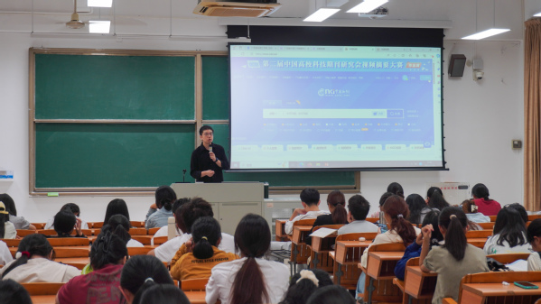 为强化读者的信息检索实践能力,本届推广周特别设置了电子资源检索大赛,要求参赛者在限定时间内利用我校订购的数据库平台完成检索题目,有效锻炼了学生的实际检索能力。赛前,图书馆郭韵焓老师为参赛同学作了题为“图书馆宝藏数据库入门与利用”的培训讲座,系统讲解了信息素养的内涵、我校电子资源与各专业的匹配情况、论文文献的阅读方法、检索结果的分析技巧以及大赛注意事项。他指出:“熟练掌握电子资源的使用,是赋能学术研究、提升自主学习能力的关键一步。”讲座过程中,同学们积极互动,不少参赛者表示培训内容“实操性强,对后续比赛和学习都有直接帮助”。