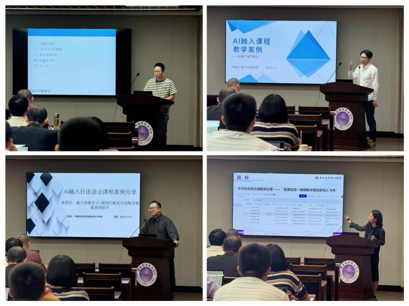 教学展示环节,四位教师结合所授课程分别展示了人工智能技术在教学设计、实践环节中的具体应用,分享了教学实践中的经验与思考。