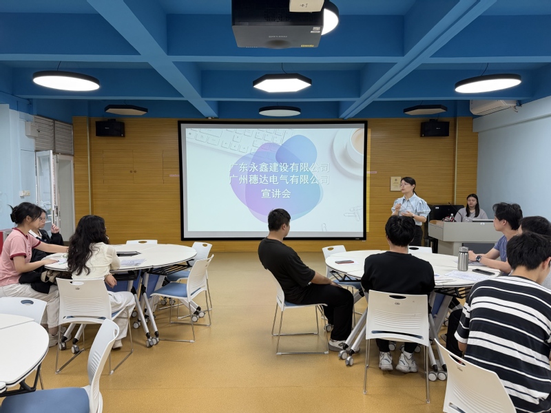 下午,广东永鑫建设公司在B7-402教室面向学院2026届毕业生举办了宣讲会。宣讲会现场,企业代表人力资源负责人郑宇敏经理详细介绍了企业发展历程、业务领域以及人才培养模式,展示了公司在工程建设方面的实力与成果。
