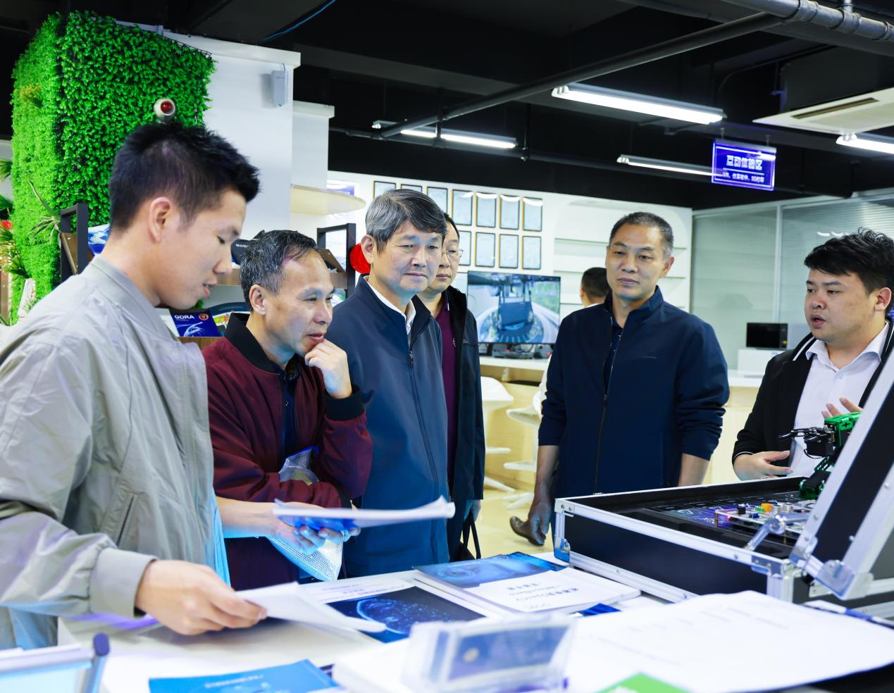 在广东诚飞智能科技有限公司相关负责人的陪同下,姚若河院长一行先后参观了公司的产品展示中心、核心研发部门。在产品展示中心,企业技术讲解员通过“机器视觉与语言教学平台”“智慧城市应用场景”“AI+工业数字化技术”三大板块,生动展示了诚飞智能在人工智能与物联网领域的技术成果。从智能分拣系统的精准识别到智慧仓储的动态优化,教研室主任就技术细节与应用前景与现场工程师进行交流探讨,深入了解企业的技术研发方向与实际生产需求。