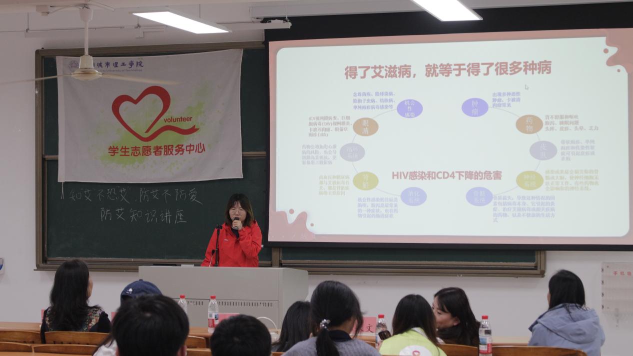 随后,花都区疾病预防控制中心医师张莉微带来干货满满的专题讲座。张莉微结合校园防艾工作实际,用严谨的数据、典型案例系统地讲解艾滋病的传播途径、临床特征、科学防治手段及相关法律法规,重点指出生活中常见的认知误区;互动环节,同学们踊跃提问,张莉微针对性地进行答疑解惑,进一步让大家认识到艾滋病防控的现实意义与个人责任。