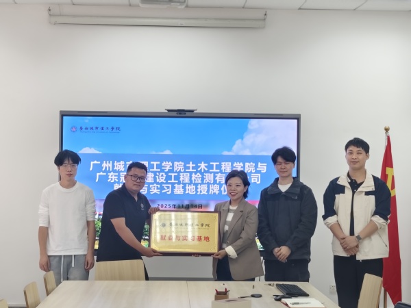 本网讯(记者 王秋湛)11月14日上午,土木工程学院与校友企业广东冠道建设工程检测有限公司在B1-201室举行“就业与实习基地”授牌仪式。广东冠道建设工程检测有限公司副总经理、土木工程学院首届校友张浩华,学院党总支副书记李韦华,副院长赵小芹和学院教师代表共同出席,标志着双方在人才培养与产学研协同方面迈出实质性一步。