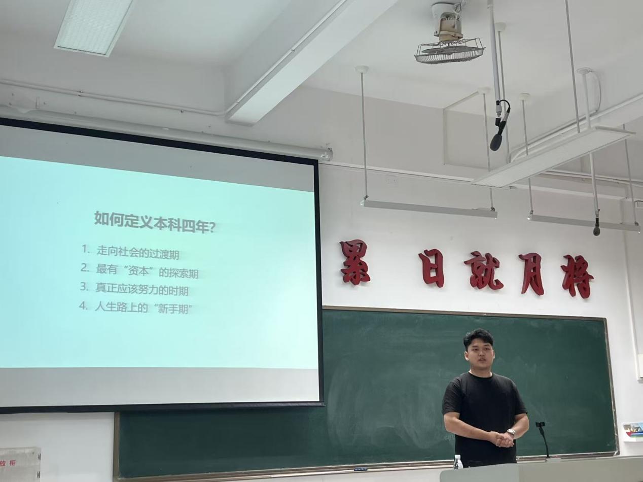 于泽人以“如何定义本科四年”为核心,将其概括为“新手期、努力期、过渡期、探索期”的有机融合,强调这是个人认知、能力与心态全面塑造的关键阶段。他提出“目标引领,手段支撑”的规划路径,建议建立短长期结合的目标体系并动态优化。他结合亲身实践,给出了几点建议:一是要脚踏实地,切勿好高骛远,注重基础积累;二是坚信“努力或许仍有99%的失败可能,但不努力则注定100%失败”,他以自己屡败屡战的论文投稿经历激励大家勇于尝试;三是学会以学习的眼光看待一切,认为“挫折往往也是成长”,关键在于如何从中汲取养分并巧妙“包装”转化为自身优势;四是常怀感恩之心,深刻认识到“个人的成就离不开平台的支持”,他特别感谢学院领导、老师在其成长路上给予的宝贵指导与帮助。