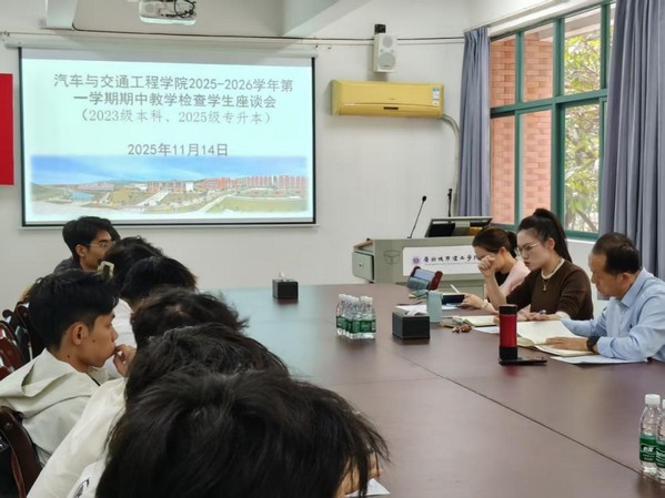 本网讯(记者 谭安然)为精准掌握新学期教学运行动态,及时回应学生学习诉求,切实破解教学管理中的难点,持续提升人才培养质量,汽车与交通工程学院于11月14日,在学院B6-203、B8-103、B7-201会议室同步召开各年级学生教学期中座谈会。学院院长李礼夫、书记林叙群、副院长钟玉华与全体辅导员、各教研室教师代表与2023级、2024级、2025级(含专升本)各班学生代表齐聚一堂,以“开放交流、共促提升”为宗旨,围绕教学、资源、管理等核心议题深入对话交流。
