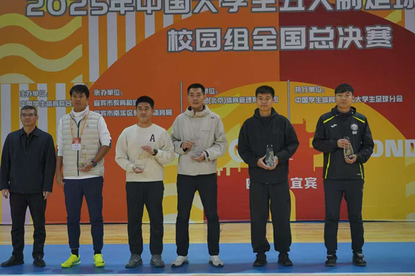 半决赛对阵身体条件极为突出的内蒙古农业大学,这场“南北对决”成为本届赛事的经典之战。上半场双方攻防胶着,0:0的比分一直保持到中场休息。下半场,我校机械工程学院/机器人工程学院小将谭骏林抓住关键战机率先破门1:0领先,点燃全队士气。然而,对手在比赛最后21秒采用“超人战术”顽强扳平比分,将比赛拖入点球决胜阶段。来自管理学院的守门员唐伟豪表现神勇,成功扑出对手首个罚球,但运气稍逊一筹,我校最终以6:7憾负对手。历经半决赛的高强度鏖战,队员们体力消耗巨大,在面对清华大学的季军争夺战中1:3惜败,最终锁定全国第四名,我校主教练邹小驹凭借出色的临场指挥与战术部署,被评为“优秀教练员”。