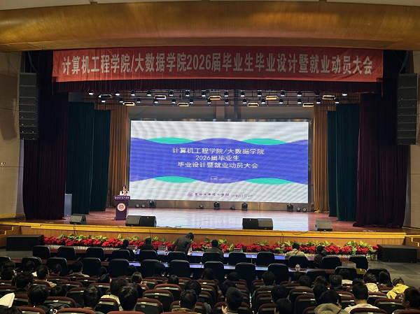 本网讯(记者 陆佳煌)为扎实推动2026届毕业生就业工作,全力促进毕业生高质量就业,11月20日上午,计算机工程学院/大数据学院在学生活动中心召开2026届毕业生毕业设计及就业动员大会。学院党总支书记张彩霞、院长助理、学工办副主任、毕业班辅导员、教务员以及2026届全体毕业生出席本次大会。