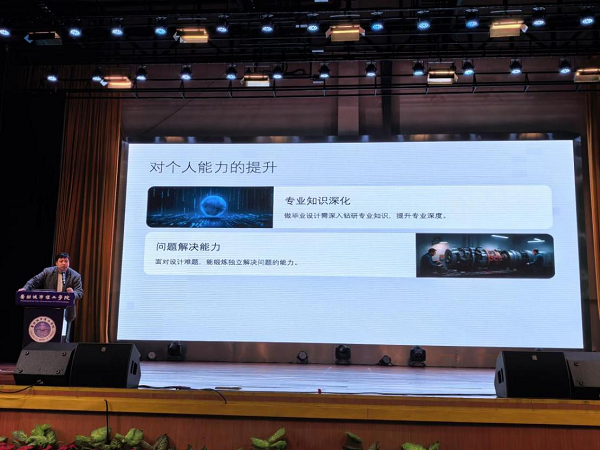 院长助理邓一星从毕业设计的重要性、毕业设计的流程、对学生的要求等方面,详细介绍了本次毕业设计各环节的工作安排和相关要求。他强调,毕业设计不仅与学生的毕业有关,更对学生未来的职业发展和学术深造有着深远的影响,同学们要合理安排时间,与毕业设计指导教师保持密切沟通,严格按照各时间节点完成相应的任务。
