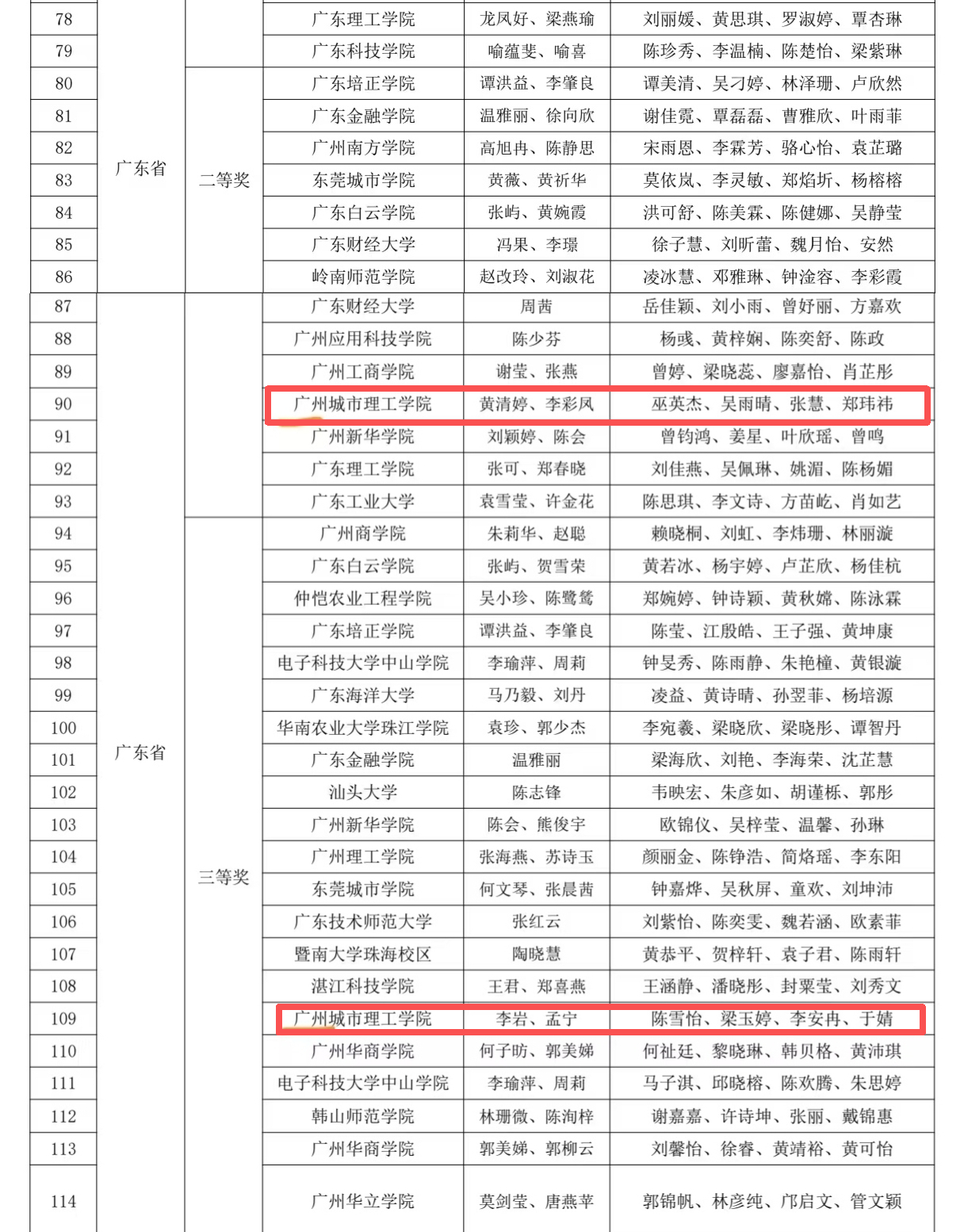 获奖名单(孟宁 提供)