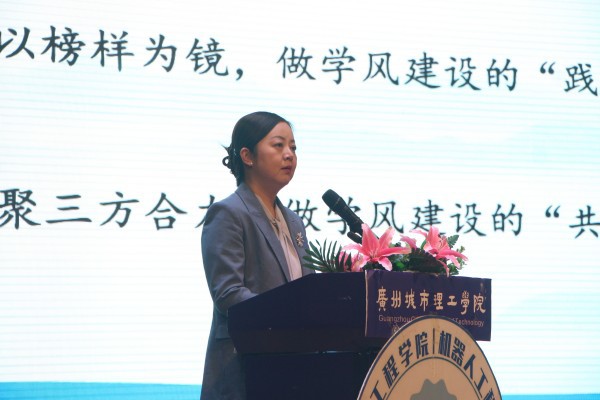 25日下午,学风建设动员暨表彰大会在学生活动中心举行。学院书记任春雯,副院长邓达强,各教研室负责人,各党支部书记,全体辅导员及获奖学生代表等参加本次会议。党总支副书记、学生工作办公室副主任吕诗宣读《关于表彰机械工程学院/机器人工程学院学风建设优秀个人的决定》。学院领导、教研室负责人、党支部书记依次上台为获奖代表颁发荣誉证书和文创纪念品。