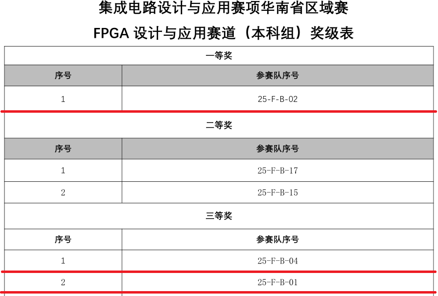 我校参赛队伍由电子信息工程学院/通信工程学院大二至大四学生组成,涵盖集成电路设计与集成系统、电子信息工程、通信工程等多个专业。在6月举办的华南省区域赛中,我校六支队伍参赛,凭借获得IC设计本科组二等奖一项,FPGA本科组一等奖一项、三等奖两项的优异成绩,所有获奖队伍均成功晋级全国总决赛。全国总决赛中,我校队伍不负众望、再接再厉,取得优异成绩,其中,由郭敬荣、刘荣旺老师指导,邱铭生、黄天翔、王兵兵同学组成的队伍荣获FPGA本科组一等奖;由董萌、黄贤帅老师指导,陈帅、朱宇浩、陈佳妮同学组成的队伍获得FPGA本科组三等奖。郭敬荣、刘荣旺两位老师获评“优秀指导老师”。