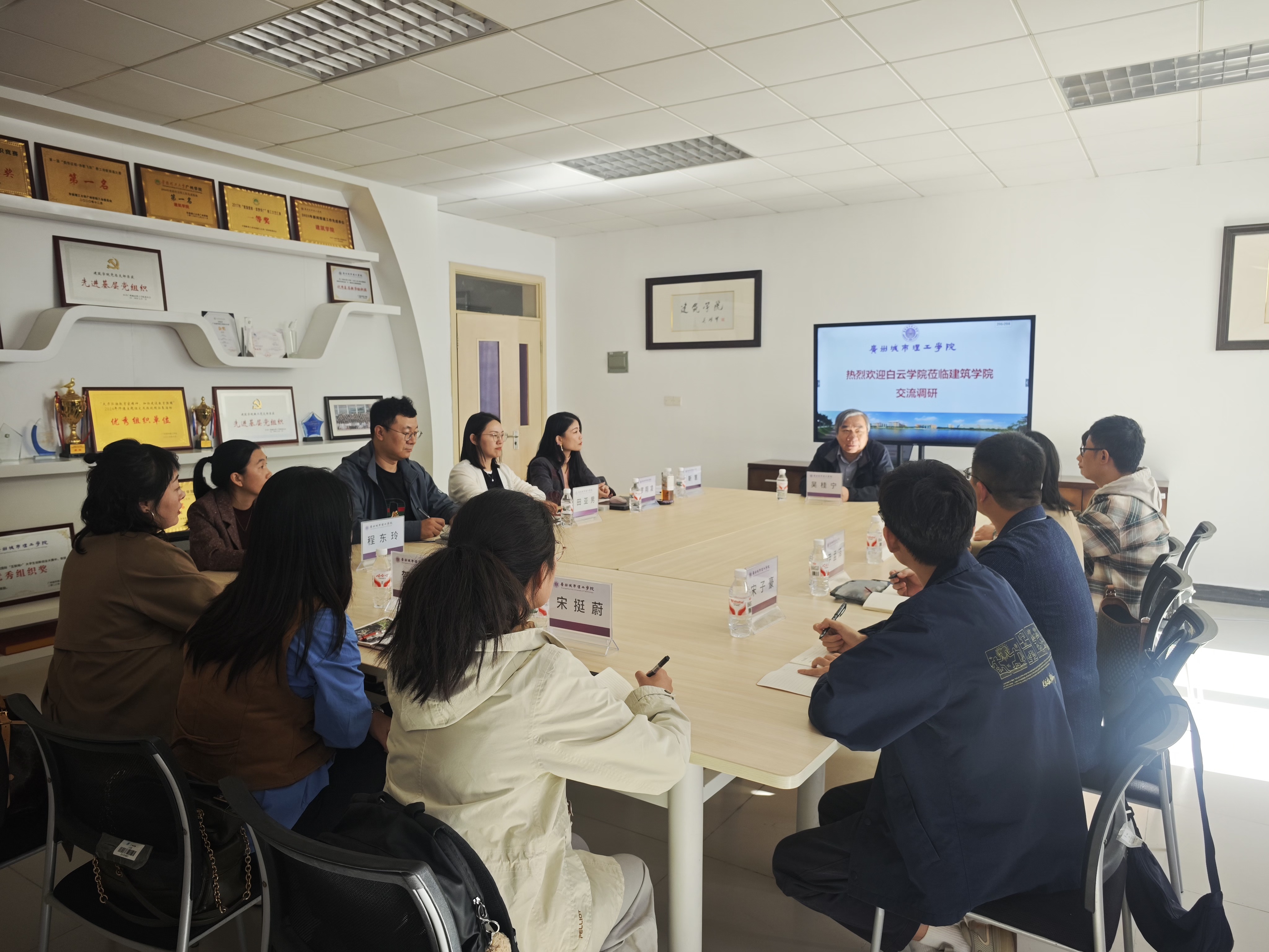 本网讯(记者 田亚男 陈磊)11月26日下午,广东白云学院建筑工程学院建筑学系主任朱国婷副教授带领教师团队一行来访我校建筑学院,围绕建筑学专业的人才培养、课程体系构建、技术融合与校企合作等议题,就当前面临的共性问题与未来合作方向等开展深入交流。我校建筑学院副院长吴桂宁、建筑设计教研室负责人、骨干教师代表等参加交流研讨。