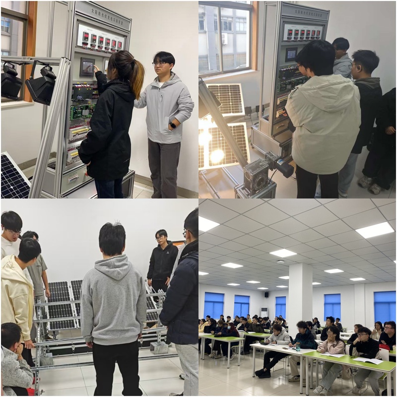 实习期间,学生在企业工程师与学院教师指导下,系统学习了各设备平台的工作原理、结构组成、运行维护及安全规范,并开展了MCGS Pro、组态王、PLC1200等工业控制软件实操训练,以及CAD制图、光伏支架与组件搭建等工程实践。实习采取“半天理论、半天实操”模式,注重“学做结合”,有效提升了学生动手能力与解决复杂工程问题的综合素养。