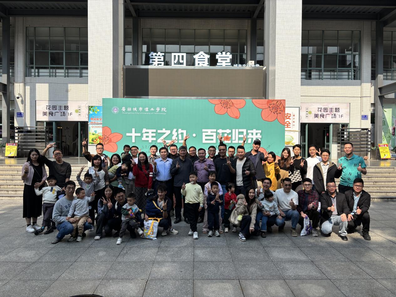上午,返校活动在学校第四饭堂正式启幕。校友们陆续抵达签到处,领取专属纪念礼品后,纷纷在“十年之约・百花归来”主题背景板前签名留念,驻足合影,用镜头定格重聚的珍贵瞬间。一张张笑脸饱含着久别重逢的喜悦,一声声问候承载着跨越十年的牵挂。