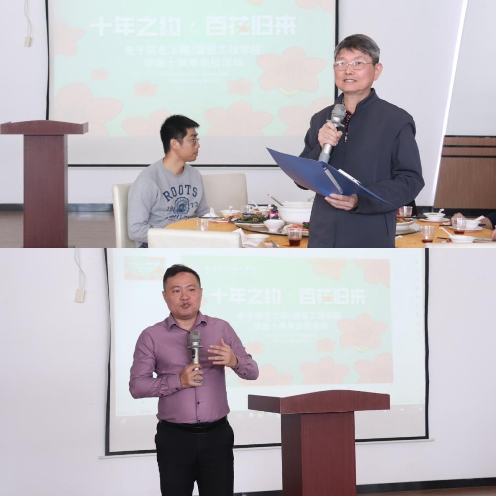 本网讯(记者 高歌)12月6日,电子信息工程学院/通信工程学院举行的以“十年之约・百花归来”为主题的2015届毕业十周年校友返校活动圆满落幕。近五十位2015届校友满怀对母校的思念与眷恋重返校园,通过打卡互动、团圆宴聚、定格时光、校园巡礼等系列活动。重温青葱求学时光,共叙师生同窗情谊,共话学院未来发展,学院院长姚若河、党总支常务副书记罗自力、学工办副主任以及2015届班导师代表及全体返校校友共同出席活动。