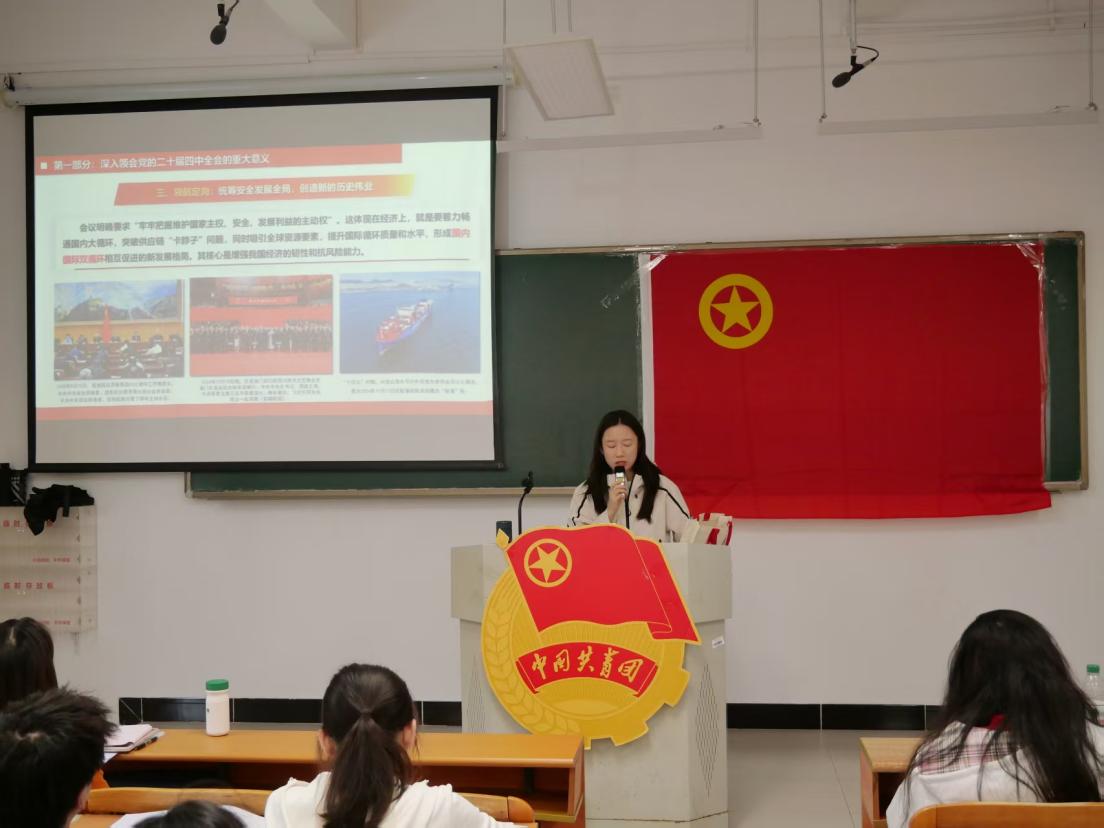 本网讯(记者 郑玮祎)为深入学习贯彻党的二十届四中全会精神,筑牢青马学员思想根基。12月6日,校团委邀请马克思主义学院青年教师、校青马班班主任贾陶然为第5期校青马班学员宣讲党的二十届四中全会精神,校团委组织部、宣传部的学生骨干共同参与学习。