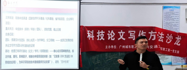 本网讯(记者 张文鹏)为持续加强学院学术科研团队建设,提升教师科研创新能力,汽车与交通工程学院于12月5日下午在B8-103举办“科技论文写作与科研项目申报”专题学术沙龙。活动特邀韶关学院智能工程学院、“科创中国”南方特色作物机器人专业服务团专家叶磊博士作主题分享,学院青年教师及其他感兴趣的教师参会,现场学术氛围浓厚。