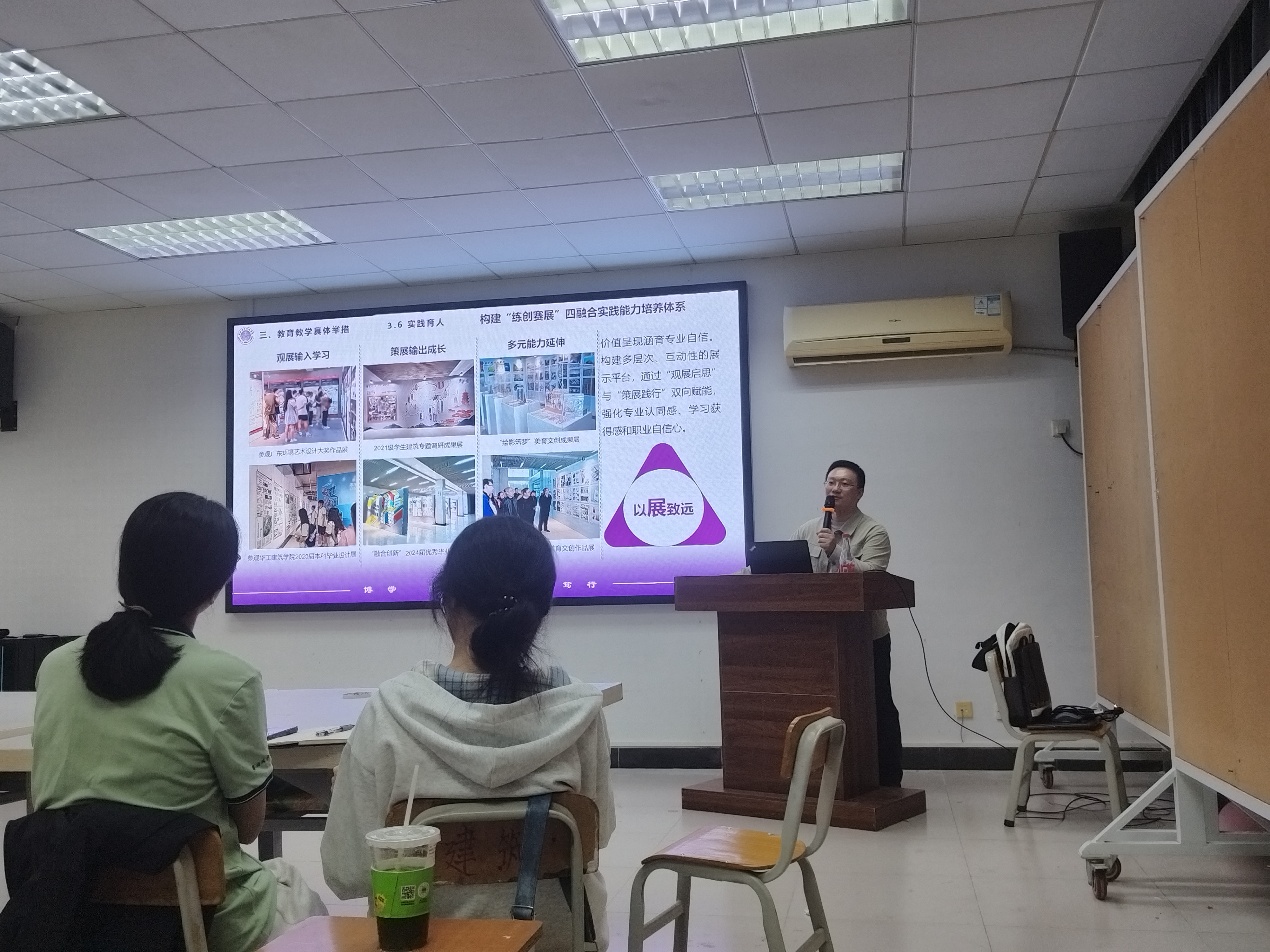 陈磊以清晰的脉络、生动的解读,带领学员们深刻领悟党的二十届四中全会的核心要义。从“全会基本情况”到“‘十五五’时期的重要地位”,从“指导方针与主要目标”到“规划任务和重大举措”,每一个板块、每一项部署,都化作青年们理解国家发展蓝图的思想坐标。陈磊还结合建筑学院“十五五”规划,讲解了“练创赛展”四维融合实践育人体系。陈磊对青马学员提出具体要求,希望学员们当好表率,以“立德筑基”厚植理想信念,用红色教育、实践研学让信仰“可感可触”;以“以创启智”激活专业潜能,从学科竞赛到创新工坊,让设计图纸里生长出“家国情怀”;以“以展促技”搭建成长舞台,通过展览、交流等让青年的创意与社会需求同频;以“以赛聚力”锤炼过硬本领,在团队协作中学会“把论文写在祖国大地上”。