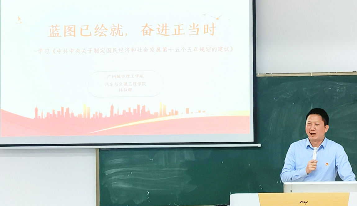 本网讯(记者 杨剑)12月12日,汽车与交通工程学院党总支书记林叙群以“蓝图已绘就,奋进正当时——学习《中共中央关于制定国民经济和社会发展第十五个五年规划的建议》”为主题进行党课宣讲,旨在深入学习贯彻党的二十届四中全会精神,并就支部学习宣传和贯彻落实全会精神进行工作部署。会议由学院教工第一党支部书记主持,支部全体党员参加会议。
