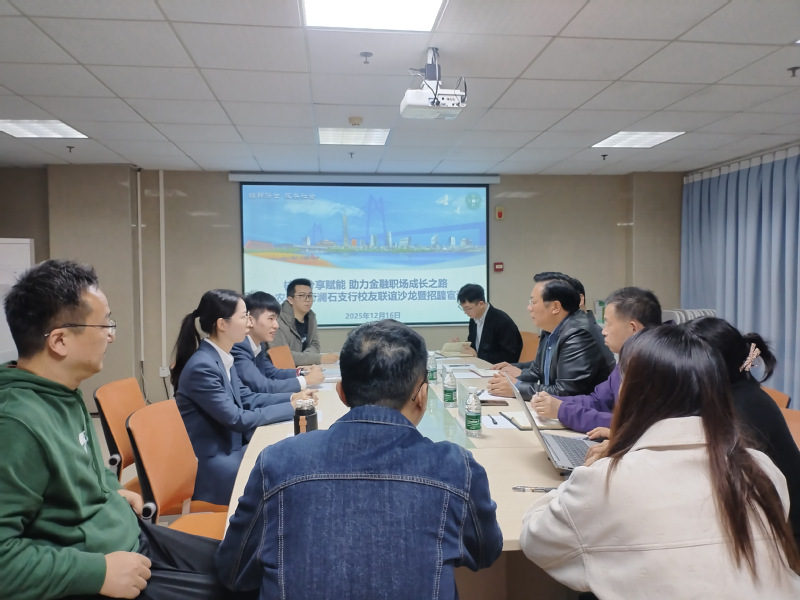本网讯(记者 毛锦淇)为搭建校友交流桥梁、促进金融人才汇聚,12月16日,经济学院与佛山农商银行澜石支行联合举办校友联谊沙龙暨招聘宣讲活动。学院院长王仁曾、党总支书记任远、副院长黄瑞新,佛山农商银行澜石支行校友们出席会议,本次活动吸引了众多在校金融相关专业师生踊跃参与,现场气氛热烈。