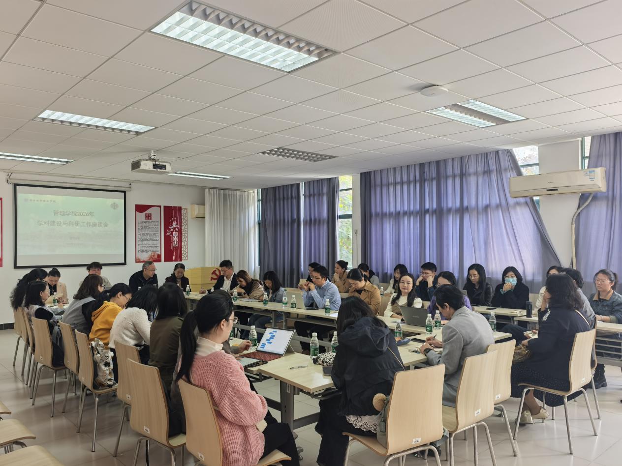 本网讯(记者 李香)12月18日上午,管理学院在A8-203组织召开了2026年学科建设与科研工作座谈会。学院领导班子全体成员、具有副高以上职称及博士研究生学历教师代表等30余人齐聚一堂,共同探讨学院科研发展方向与学科建设路径,为未来科研突破与申硕工作凝聚共识、谋划布局。