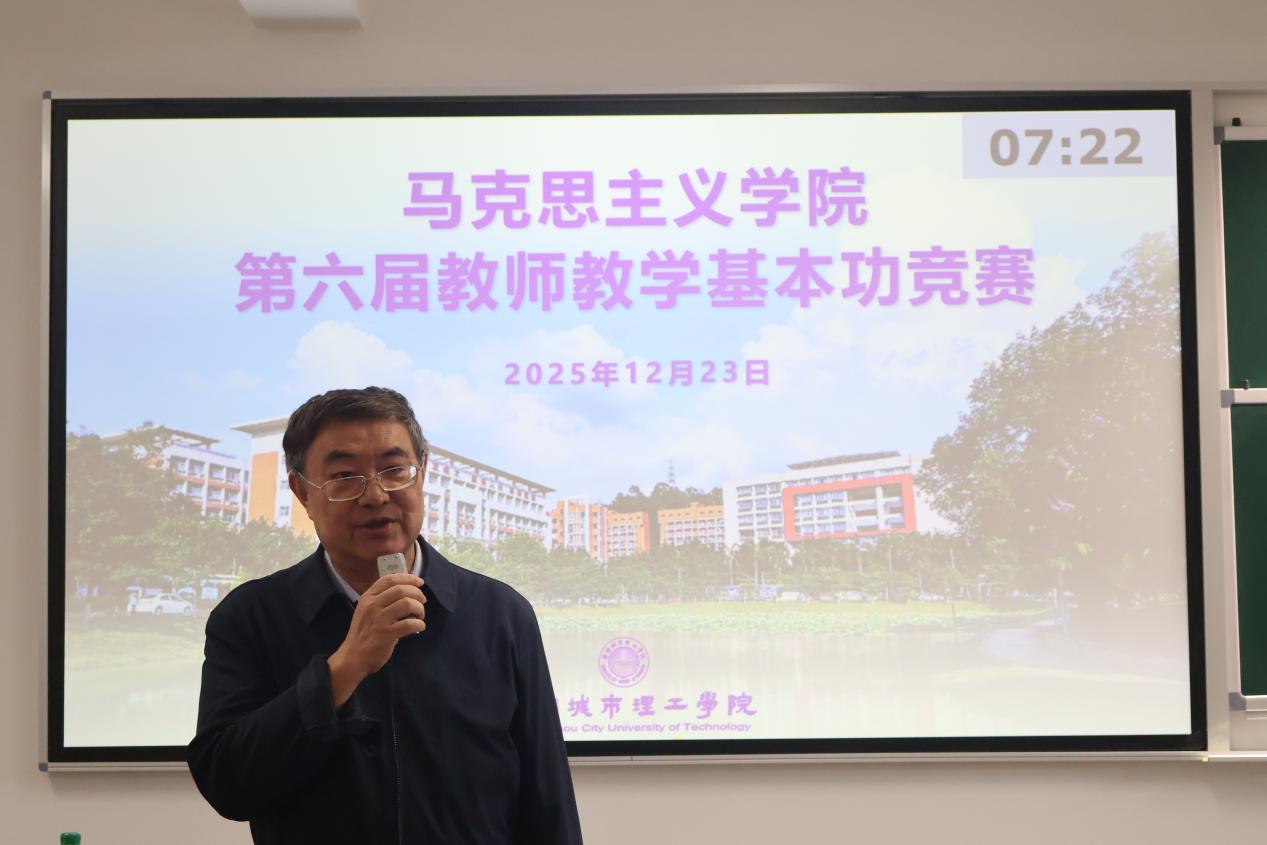 学院院长吕志为竞赛致辞并对各位专家的到来表示热烈欢迎与衷心感谢。他强调,教学基本功是教师的立身之本、育人之基,尤其在思政课教学中,扎实的功底与不断创新的意识直接影响立德树人成效。他鼓励参赛教师珍惜切磋平台,充分展现教学智慧,希望本次竞赛能成为激发全院教学活力、探索思政课改革新路径的重要契机。