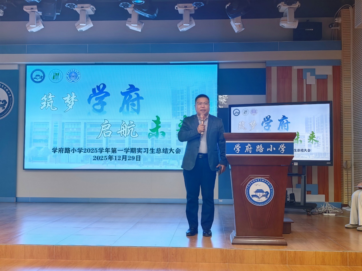 本网讯(记者 李小蕾)12月29日,学府路小学举办2025学年第一学期实习生总结大会,外国语学院常务副书记李伟、英语教研室负责人及辅导员代表受邀参会,与学府路小学师生共同见证学院英语实习生的成长与蜕变。