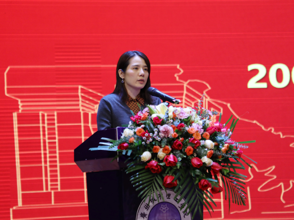 教师代表吴丽镐结合自己的执教经历,将个人成长与学校发展交融并进的动人故事娓娓道来。他感谢学校提供了实现教育理想的舞台,让自己从初登讲台到参与专业建设不断进步;感谢学生在教学相长中带来的激励与滋养;感谢学校营造了温暖互助、并肩奋斗的集体氛围。“我将继续坚持立德树人,以更饱满的热情传承匠心、潜心育人,做好学生的引路人,与学校同心同德,共谱下一个更加辉煌的二十年!”