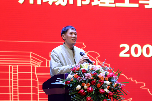 校友代表黄焯超生动讲述了自己在母校求学期间的趣事。他感慨地表示,学校的变化见证了母校发展,培育之情始终如一。在校期间跨学科组队、开展项目实践的经历,为其日后创业奠定了重要基础。“是学校给了我平台与机遇”,他祝愿母校未来更加辉煌,让“广州城理”的名字在海内外愈发响亮。
