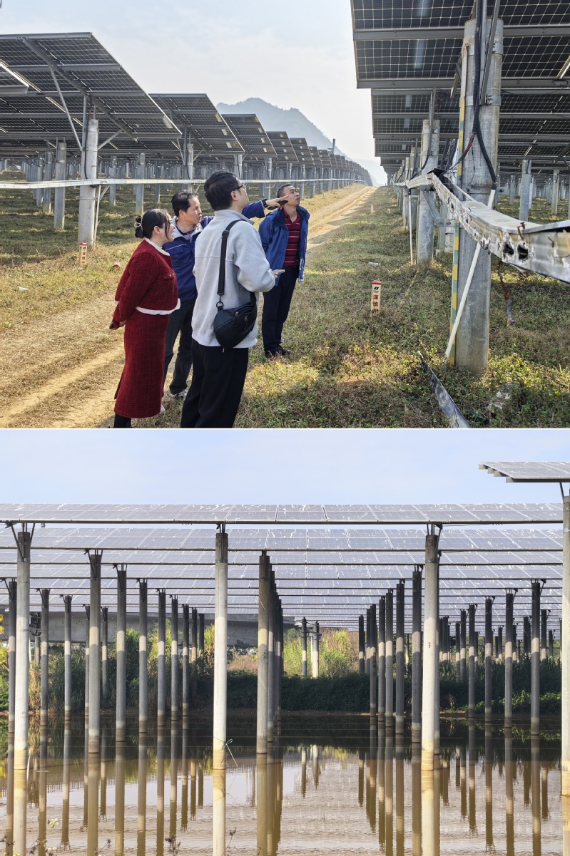 1月26日,电气工程学院副院长沈娜率教师团队赴清远英德,走访广东华电投资建设的英红仙桥“农光互补”光伏发电项目。科技项目主管何峰表示,项目采用“一光两用、一地两用”的立体构造,采用“分块发电、集中并网”模式,是集光伏发电与农业种植为一体的大型综合性工程。他介绍了电站在实际运维中面临的多重挑战,包括汛期水患、粉尘与鸟粪污染、鼠害侵蚀等影响运行安全与发电效率的突出问题。