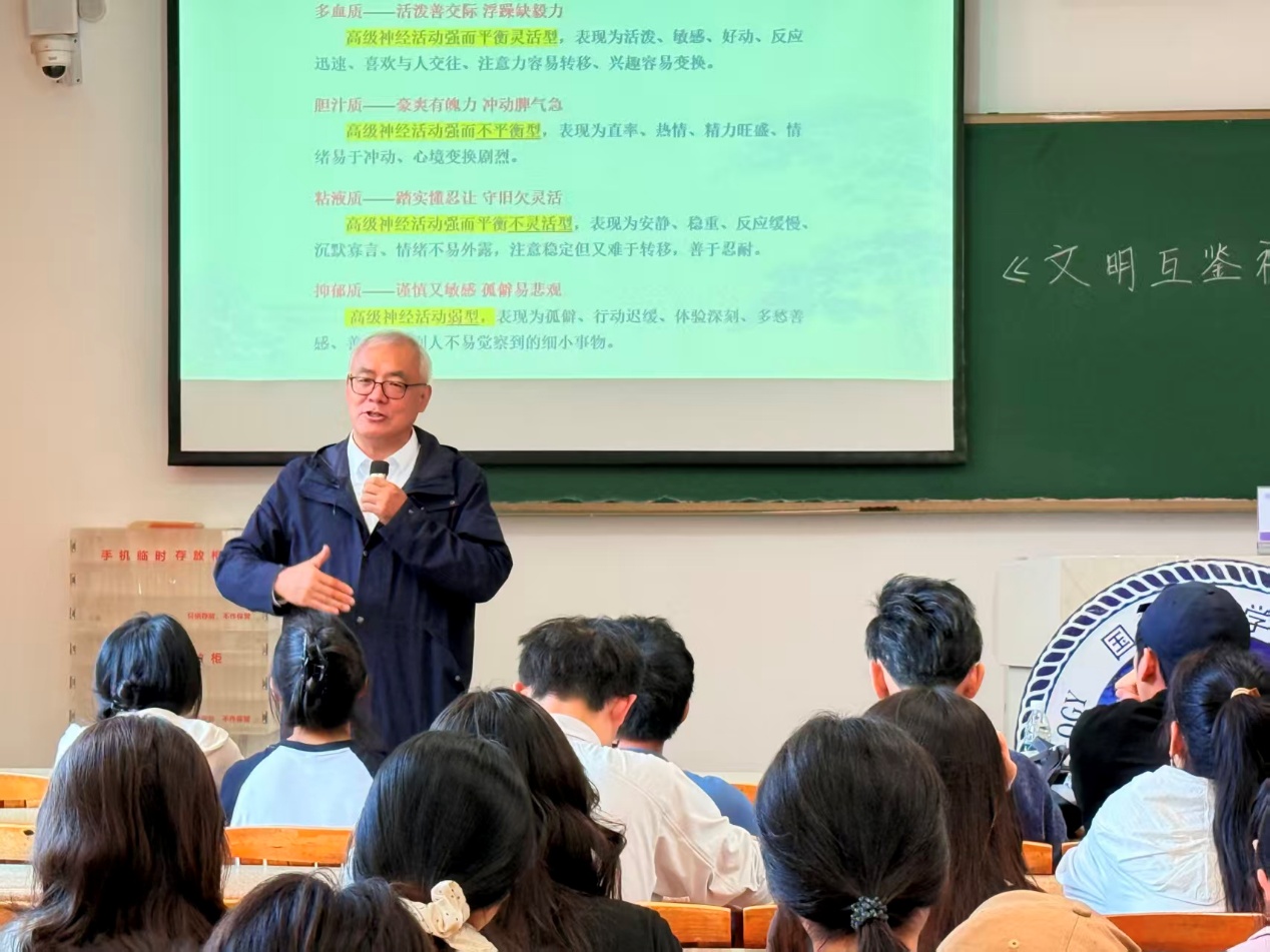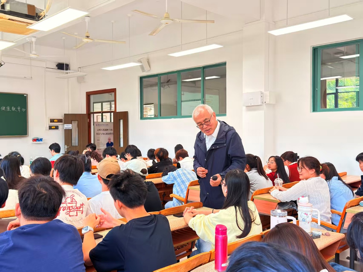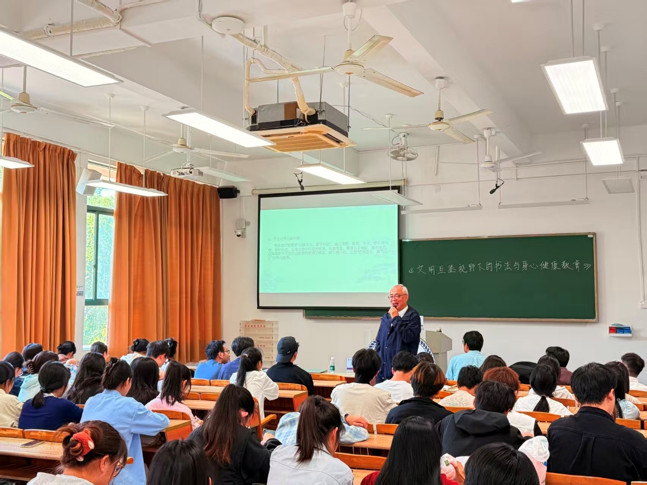 讲座中,周斌教授结合自身在联合国讲学的经历与跨文化心理研究的深厚积淀,阐释书法作为“世界智慧”在文明互鉴中的独特价值。他通过提出“书法处方”概念,深度互证中国传统书法理论与西方“气质学说”,引导师生理解笔墨线条如何干预多血质、抑郁质等不同人格特质,清晰揭示了书法在左右脑协同与情绪调节中的科学机理,诠释了书法不仅是笔墨艺术,更是兼具“养心、养性、养生”的心理疗愈路径,引导师生在挥毫泼墨间,探寻平衡心灵的“冥想之窗”。