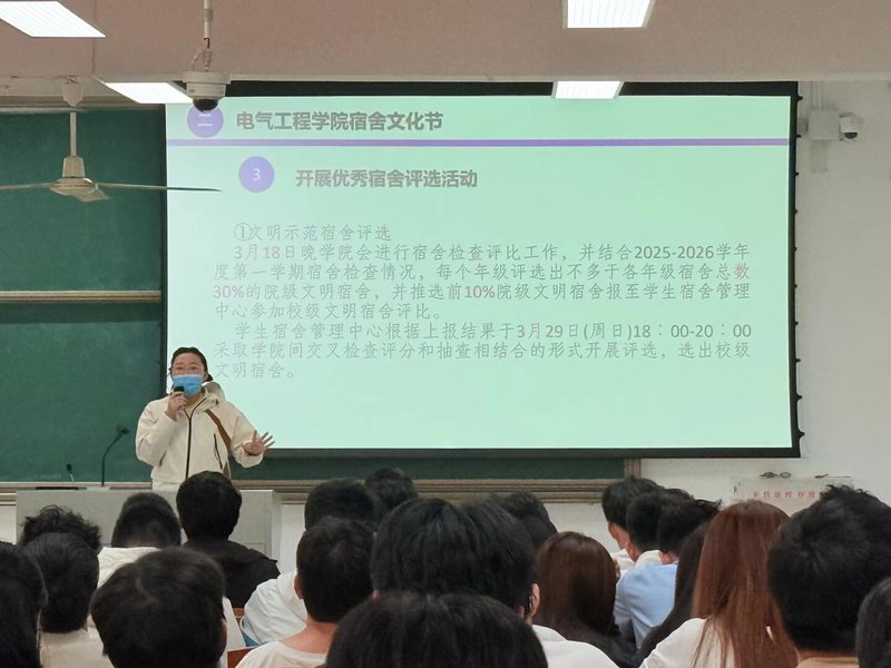 据悉,电气工程学院将结合学校第十五届宿舍文化节要求,在后续开展宿舍安全检查、趣味运动会、“跳蚤市场”公益交易活动等系列活动,为学生搭建交流互动、共建共享的平台,深入推动宿舍文明建设。
