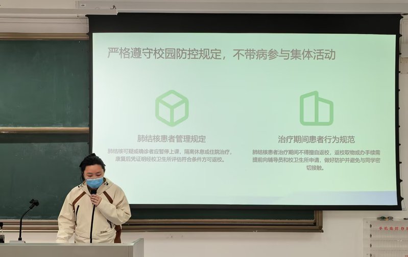 李晨宁还重点开展了防诈骗宣传、心理健康教育及肺结核等春季传染病防控教育。她强调,安全与健康是学生宿舍生活的基本底线,直接关系到每位同学的切身利益。她提醒同学们,要善于借助辅导员、学院心理辅导站、派出所等校内外资源,遇到问题及时求助,共同筑牢宿舍安全防线。
