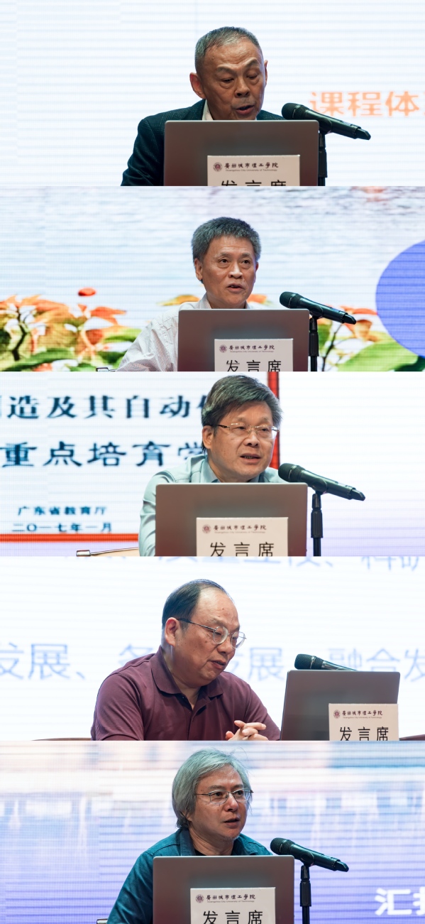 教务处处长张星明、学科与科技处处长林洪、机械工程学院/机器人工程学院院长黄汉雄、电气工程学院院长杨向宇、珠宝学院院长张珂围绕教学科研等重点工作进行了交流发言。