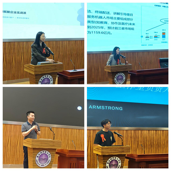 分享环节,嘉宾们结合实战经验带来多维度创业干货进行分享。之云科技营运总监顾菲剖析花都本地产业机遇,点出部分互联网岗位的AI替代现状,强调聚焦实体产业的重要性,科普AI工具实操知识并给出学业创业建议,同时介绍企业的AI配套资源支持。派宝机器人副总经理舒绪琼以企业十余年发展历程为切入点,讲解机器人产业发展逻辑,分享从产品转型到出海发展的全流程,结合实际案例强调应用场景的核心价值,为学子创业择业提供多元视角。优秀创业校友曾忠贤坦诚分享首次创业失败的教训与二次创业的成功经验,给出规避盲目投入、做好财务规划等实用建议。学生创业者邹嘉鹏从个人IP商业化角度,分享AI创作高热度内容、构建矩阵化运营的实战思路,为在场同学提供可落地的AI创业参考。