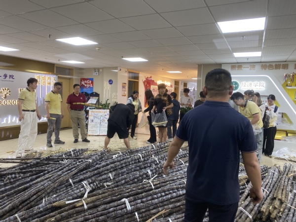 下午,学院大厅内一派热闹景象,新鲜采收的甘蔗整齐码放,师生们有序领取这份“甜蜜的爱心”。“这甘蔗又甜又脆,不仅尝到了清甜滋味,更感受到了助农的意义,自己参与削皮更能感受到农民的辛勤”,一位同学拿着甘蔗笑着说。