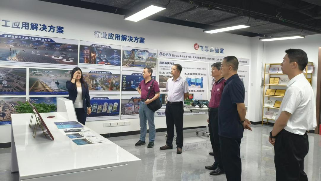 在市场总监韩晓薇的陪同下,学院一行首先参观了公司展厅,沉浸式感受智能无人机产业的科技魅力与发展活力。卓翼智能公司是行业领先的智能无人机研发企业,业务覆盖军工装备、工业应用到教育培训等多元领域。韩晓薇重点展示了无人机在电力巡检、应急照明、农林植保等领域的实战应用案例。在教育领域,公司的飞思实验室已连接全国300余所高校,构建了涵盖“无人系统组装调测、人工智能应用开发、飞行器控制设计、集群协同应用”的全链条解决方案,为高校实践教学提供了先进平台。