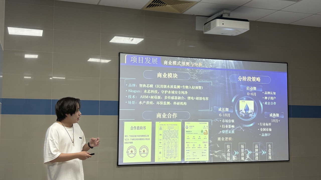 卢泽鑫现场演讲《智渔芯瞳——水下智能监测装备的领航者》项目(蔡锦淇 摄)