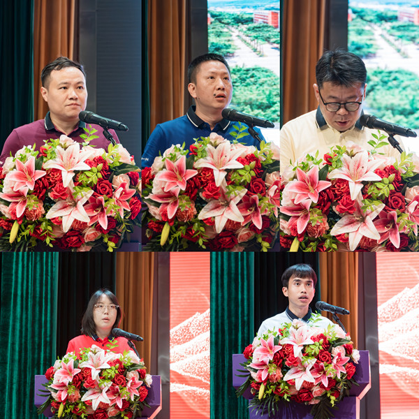 交流发言环节,五位代表立足育人一线、畅谈实践心得,分享了可借鉴、可推广的鲜活经验。电子信息工程学院/通信工程学院书记罗自力聚焦招生就业先进经验,介绍全员参与、全链条育人、全方位拓岗的工作模式,以“启蒙—培养—帮扶”体系夯实根基,以企业直送、精准对接助推高质量就业。经济学院书记任远围绕学风建设,从顶层设计、师德引领、品牌活动、精准帮扶、诚信考风五方面系统阐述,以多元载体厚植优良学风。汽车与交通工程学院书记林叙群展示心理育人成果,以六级责任链条、三级预警机制与特色品牌活动,为学生心理健康筑牢屏障,连续三年获评优秀二级心理辅导站。优秀学生代表林庆泽以“选择、成长、感恩”为脉络,讲述从军砺志、勤学争先、奉献担当的青春故事。优秀班主任王心雨以生活关心者、学业建构者、思想引导者的角色,用爱心陪伴成长,以匠心践行育人使命。