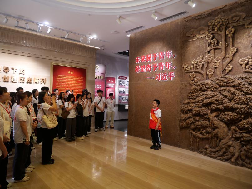 活动伊始,全体学员走进团一大纪念馆,在小小讲解员曾熙伦的带领下,依次参观“历史召唤”“潮起东园”“青运新篇”“牢记使命”四大主题展区。循着历史发展脉络,学员们认真回顾中国共产主义青年团发展进程中的关键节点与重要事件,清晰把握共青团在党的领导下诞生、成长、奋进的历程。展馆内,饱经沧桑的文物、定格历史的老照片、感人至深的先辈事迹,生动再现了共青团与党同心同行、矢志奋斗的峥嵘岁月,让学员们在回望历史中感悟初心使命,深刻体悟先辈们坚守信仰、勇担使命的青春力量与赤诚情怀。