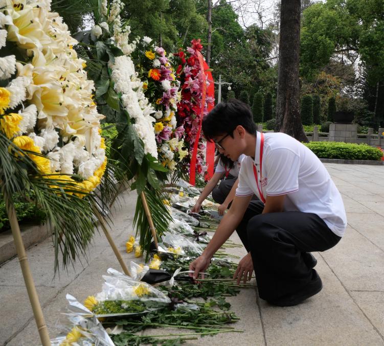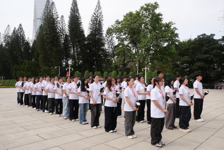随后,学员们前往广州起义烈士陵园缅怀革命先烈。苍松翠柏环绕的陵园庄严肃穆,全体学员在烈士纪念碑前整齐列队,怀着无比崇敬之情瞻仰纪念碑。大家手持素洁白菊,依次缓步上前敬献鲜花,以庄重的仪式向为民族解放事业英勇献身的革命先烈致以最崇高的敬意,深情追忆先烈们浴血奋战、不畏牺牲的峥嵘岁月。活动中,各支部学员依次诵读献词,声声寄哀思,句句颂忠魂。诵读完毕,全体学员集体肃立并鞠躬,在肃穆的氛围中传承红色基因,汲取奋进力量。