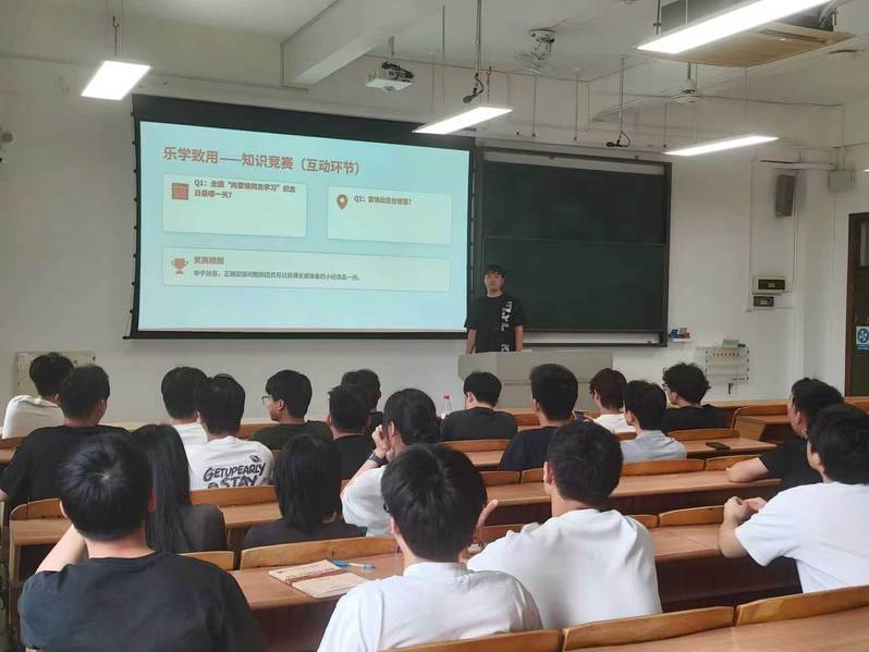 在实践践行环节,各支部以知行合一为导向,开展雷锋精神知识问答、趣味互动等活动巩固学习成果;同时组织文明劝导、学业帮扶等志愿服务,把理论学习转化为实际行动,以青春之姿践行雷锋精神。