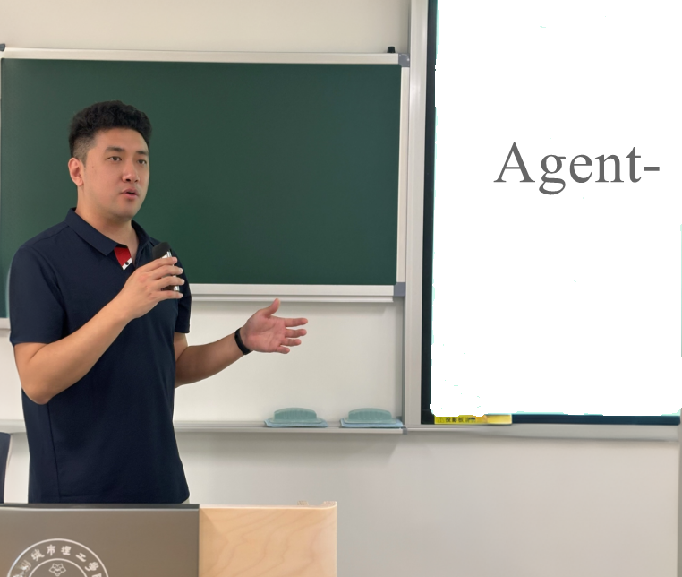 王金鹏结合智能体建模与仿真分析的发展趋势作了以《Agent-Based仿真经济学前沿问题研究》为主题的报告。他介绍了人工智能技术在复杂经济社会问题研究中的应用前景,展示了AI在经济管理研究中的方法优势与拓展空间。报告进一步拓宽了与会教师对人工智能赋能科研的认识。