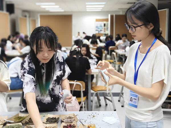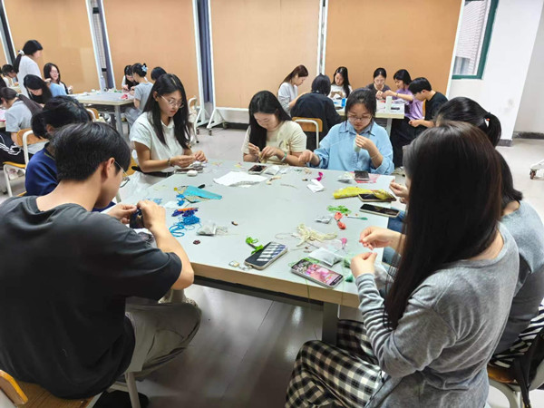 同学们在工作人员指导下开启香囊手作体验(陈锋 摄)