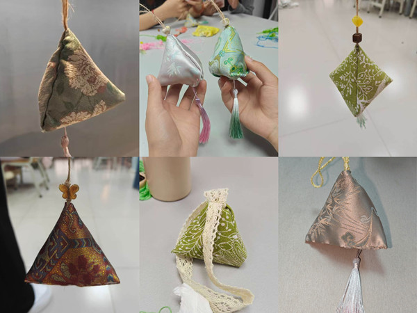 亲手制作香囊的过程,是专注当下、舒缓身心的过程,更是释放压力、治愈心灵的过程。2024级吴静同学拿着自己的作品分享道:“平时学业节奏比较快,能静下心来做一个香囊特别治愈,穿针引线的时候不用想烦心事,只专注于手上的小事,做完之后看着自己的作品,感觉特别有成就感。”
