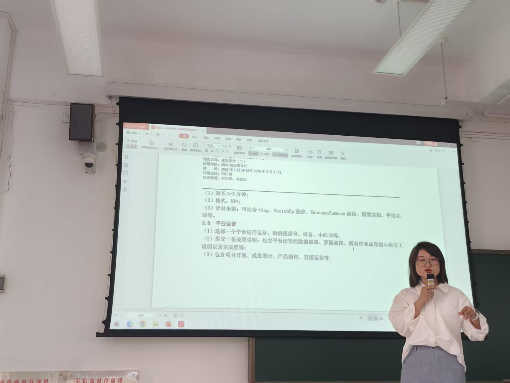 据悉,本次课题将持续8周,其间还包括有实地调研、新媒体平台实战运营等多个任务环节,将于5月中旬完成全部成果提交与专家评审。建筑学院副院长吴桂宁教授表示,学院人才培养方向正在转型,培养定位正在从传统“设计师”转向“全过程多元化人才”。学院目前已在三年级设置了BIM建筑设计、城市更新设计、绿色建筑设计三个专业方向,并在课程中融入AI技术应用、视频制作、新媒体传播等内容,鼓励学生拓展建筑设计外延,探索与媒体、教育、运营等领域的结合。未来,学院将持续深化产教融合,推动校企合作从“点状交流”向“系统共建”升级,在课程开发、实践平台搭建等方面构建长效机制,着力打造覆盖前期策划、中期设计、后期运维的复合型课程体系,助力学生在行业变革中找准定位,成长为适配未来发展的高素质建筑人才。
