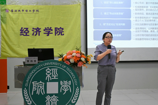 提问环节中,同学们围绕能源市场走势、大宗商品分析框架以及期货行业就业方向等问题踊跃发言。曹扬慧女士结合自身丰富的研究与实践经验,耐心解答了大家的疑问,并鼓励同学们夯实专业基础,关注市场动态,提升数据分析能力,为未来职业发展做好准备。